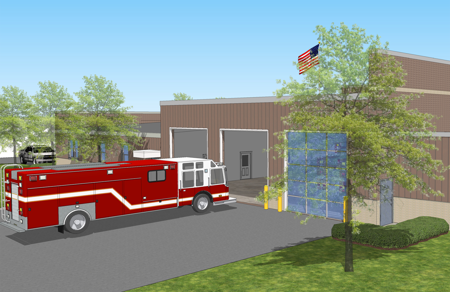 Construction documents for a 8,400 SF, 3-bay station. Upon completion of CD phase, client chose an alternate site to expand the building’s function to include a 3,750 SF emergency operations and 911 center. When completed, the 12,150 SF center will house the following spaces: